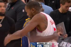 GIF-杀人诛心!只剩0.1秒 追梦直接发球给杜兰特 KD无奈扔出超远三分