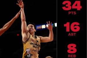此役,河村勇辉代表风城公牛首发登场出战40分钟,24投12中,三分6中3,4罚4中,砍下个人生涯新高的34分16助攻,外加8个篮板(赛季新高)。