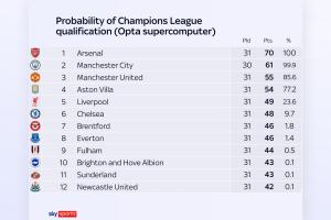 目前英超第五名能否获得下赛季欧冠资格尚未确定