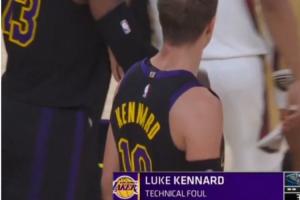 随后,裁判先后在两个不同的回合给了湖人的肯纳德和鹈鹕的墨菲一人一个技术犯规。